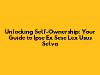 Unlocking Self-Ownership: Your Guide To Ipse Ex Sese Lex Usus Selva
