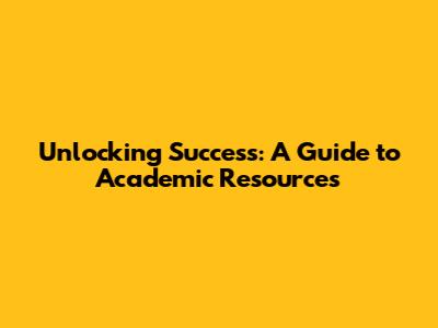 Unlocking Success: A Guide To Academic Resources