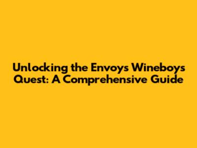 Unlocking The Envoys' Wineboys Quest: A Comprehensive Guide