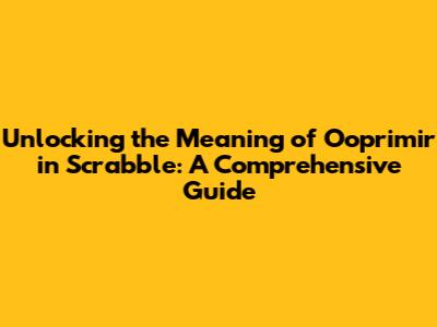 Unlocking The Meaning Of 'Ooprimir' In Scrabble: A Comprehensive Guide