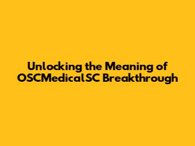 Unlocking The Meaning Of OSCMedicalSC Breakthrough