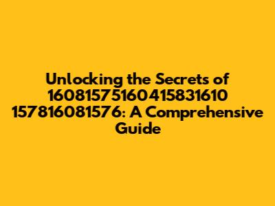 Unlocking The Secrets Of 16081575160415831610 157816081576: A Comprehensive Guide