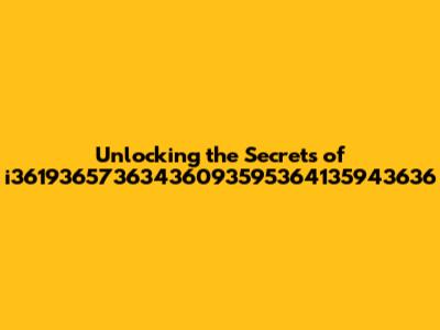 Unlocking The Secrets Of I36193657363436093595364135943636