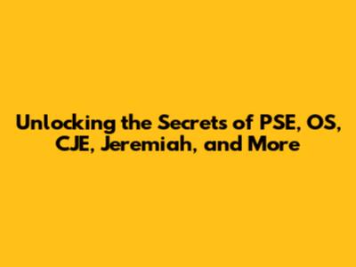 Unlocking The Secrets Of PSE, OS, CJE, Jeremiah, And More