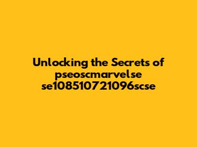 Unlocking The Secrets Of Pseoscmarvelse Se108510721096scse