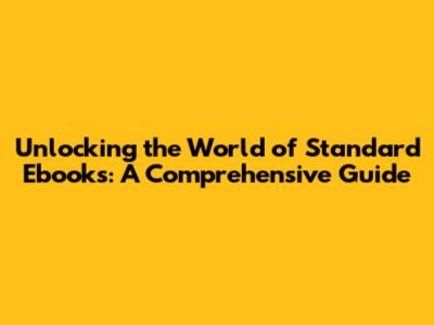 Unlocking The World Of Standard Ebooks: A Comprehensive Guide