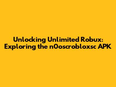 Unlocking Unlimited Robux: Exploring The N0oscrobloxsc APK