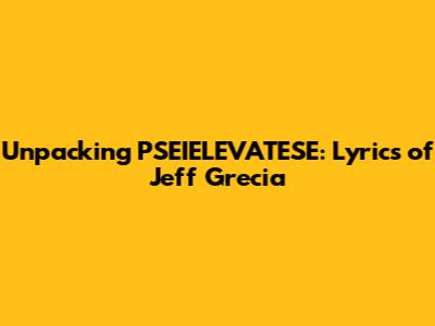 Hey music lovers! Ever found yourself completely absorbed by a song, not just enjoying the melody but also getting lost in the words? That's the power of lyrics, and today, we're diving deep into the poetic world of Jeff Grecia and his track, "PSEIELEVATESE." We're going to unpack its meaning, explore its themes, and try to understand what makes these lyrics so compelling. Buckle up, because we're about to go on a lyrical adventure! This article aims to break down the complexities of Jeff Grecia's "PSEIELEVATESE" lyrics, providing insight into the themes, messages, and artistic choices that make the song resonate with listeners. We'll examine the specific words, phrases, and overall narrative to gain a comprehensive understanding of the song's meaning and impact. By exploring the lyrical depth of "PSEIELEVATESE," we'll discover how Jeff Grecia uses language to convey emotions, tell stories, and connect with his audience. Get ready to uncover the artistry behind the music!