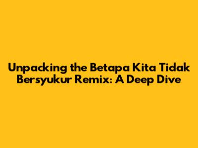 Unpacking The 'Betapa Kita Tidak Bersyukur' Remix: A Deep Dive