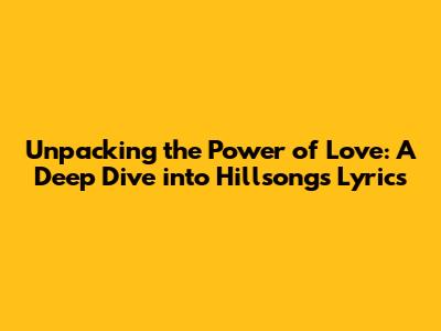 Unpacking The Power Of Love: A Deep Dive Into Hillsong's Lyrics