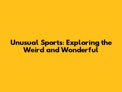 Unusual Sports: Exploring The Weird And Wonderful