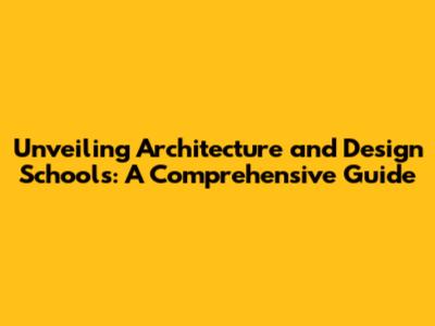 Unveiling Architecture And Design Schools: A Comprehensive Guide