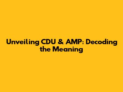 Unveiling CDU & AMP: Decoding The Meaning