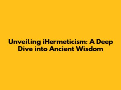 Unveiling IHermeticism: A Deep Dive Into Ancient Wisdom
