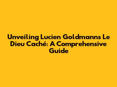 Unveiling Lucien Goldmann's 'Le Dieu Caché': A Comprehensive Guide