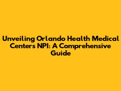Unveiling Orlando Health Medical Center's NPI: A Comprehensive Guide