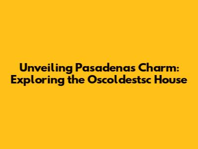 Unveiling Pasadena's Charm: Exploring The Oscoldestsc House