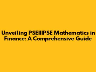Unveiling PSEIIIPSE Mathematics In Finance: A Comprehensive Guide