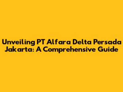 Unveiling PT Alfara Delta Persada Jakarta: A Comprehensive Guide