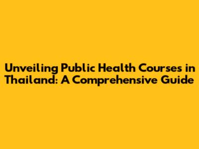 Unveiling Public Health Courses In Thailand