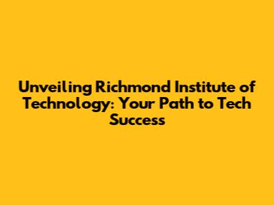 Unveiling Richmond Institute Of Technology: Your Path To Tech Success