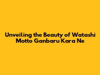 Unveiling The Beauty Of 'Watashi Motto Ganbaru Kara Ne'