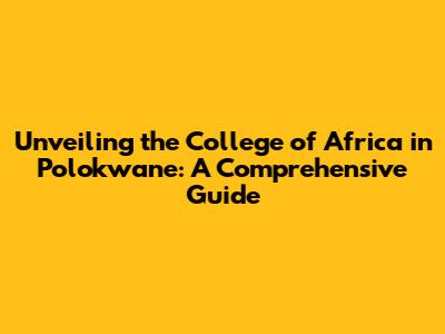 Unveiling The College Of Africa In Polokwane: A Comprehensive Guide