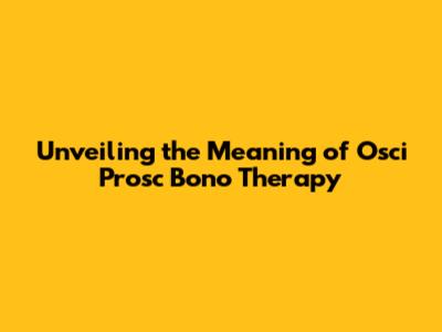 Unveiling The Meaning Of Osci Prosc Bono Therapy