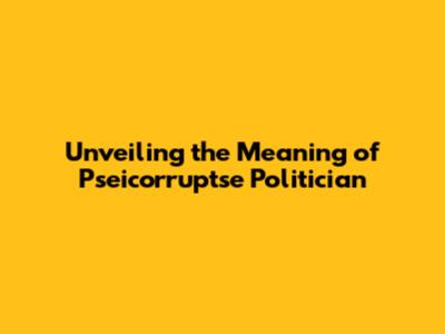 Unveiling The Meaning Of 'Pseicorruptse' Politician