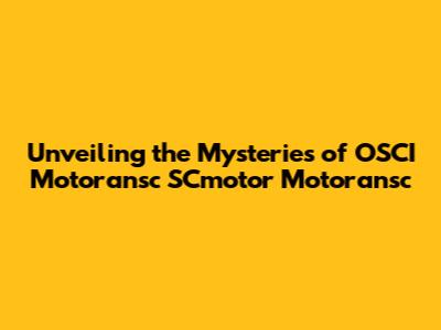 Unveiling The Mysteries Of OSCI Motoransc SCmotor Motoransc