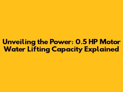 Unveiling The Power: 0.5 HP Motor Water Lifting Capacity Explained