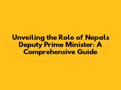 Unveiling The Role Of Nepal's Deputy Prime Minister: A Comprehensive Guide