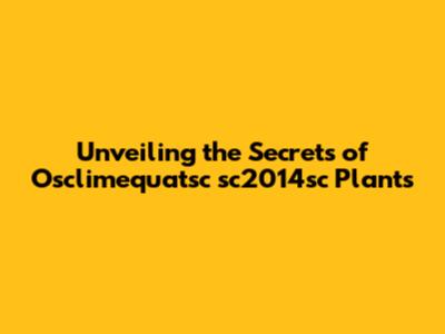 Unveiling The Secrets Of Osclimequatsc Sc2014sc Plants