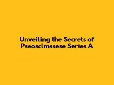 Unveiling The Secrets Of Pseosclmssese Series A