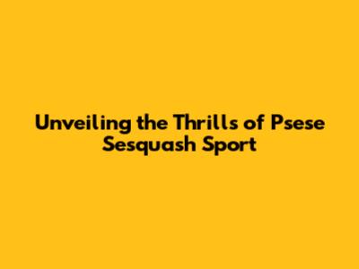 Unveiling The Thrills Of Psese Sesquash Sport