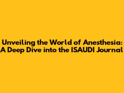 Unveiling The World Of Anesthesia: A Deep Dive Into The ISAUDI Journal