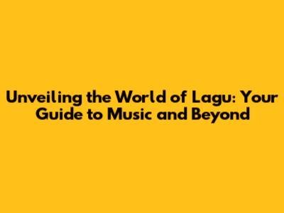 Unveiling The World Of Lagu: Your Guide To Music And Beyond