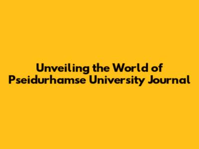 Unveiling The World Of Pseidurhamse University Journal