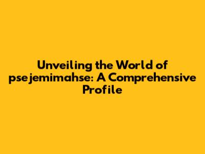 Unveiling The World Of Psejemimahse: A Comprehensive Profile