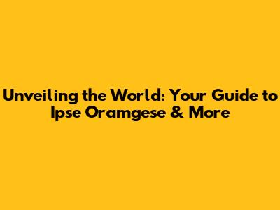 Unveiling The World: Your Guide To Ipse Oramgese & More