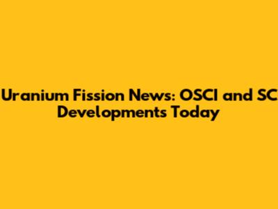 Uranium Fission News: OSCI And SC Developments Today