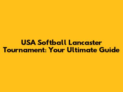 USA Softball Lancaster: Dates, Teams & More!