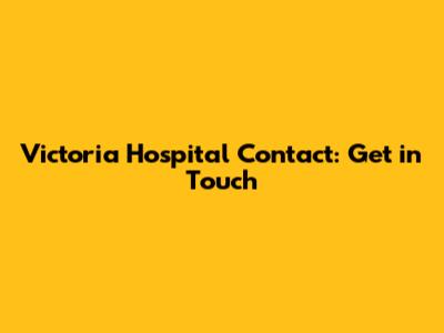 Victoria Hospital Contact: Get In Touch