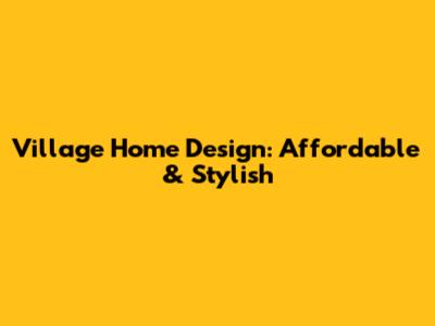 Village Home Design: Affordable & Stylish