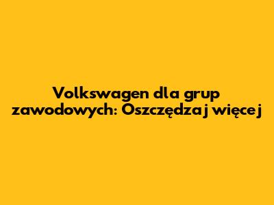 Volkswagen Dla Grup Zawodowych: Oszczędzaj Więcej