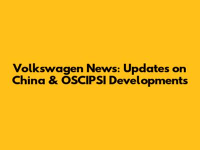 Volkswagen News: Updates On China & OSCIPSI Developments