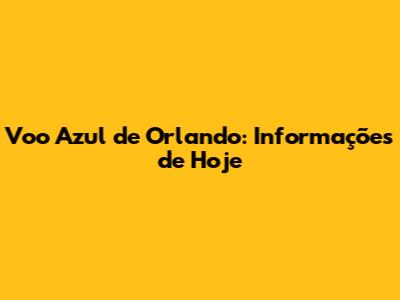 Voo Azul De Orlando: Informações De Hoje