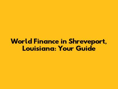 World Finance In Shreveport, Louisiana: Your Guide