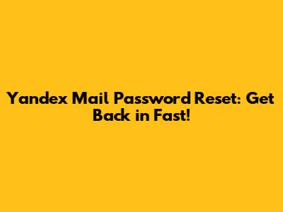 Yandex Mail Password Reset: Get Back In Fast!