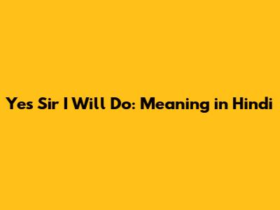 Yes Sir I Will Do: Meaning In Hindi